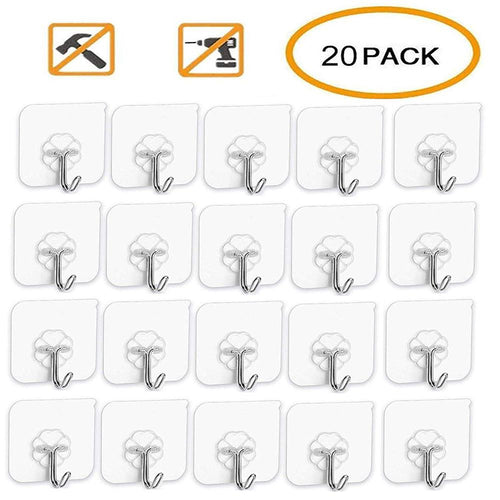 20Pcs/Set Transparent Seamless Self Adhesive Hook Load Bearing 10KG Waterproof Strong Stick Hook Bathroom Kitchen Wall Hanger